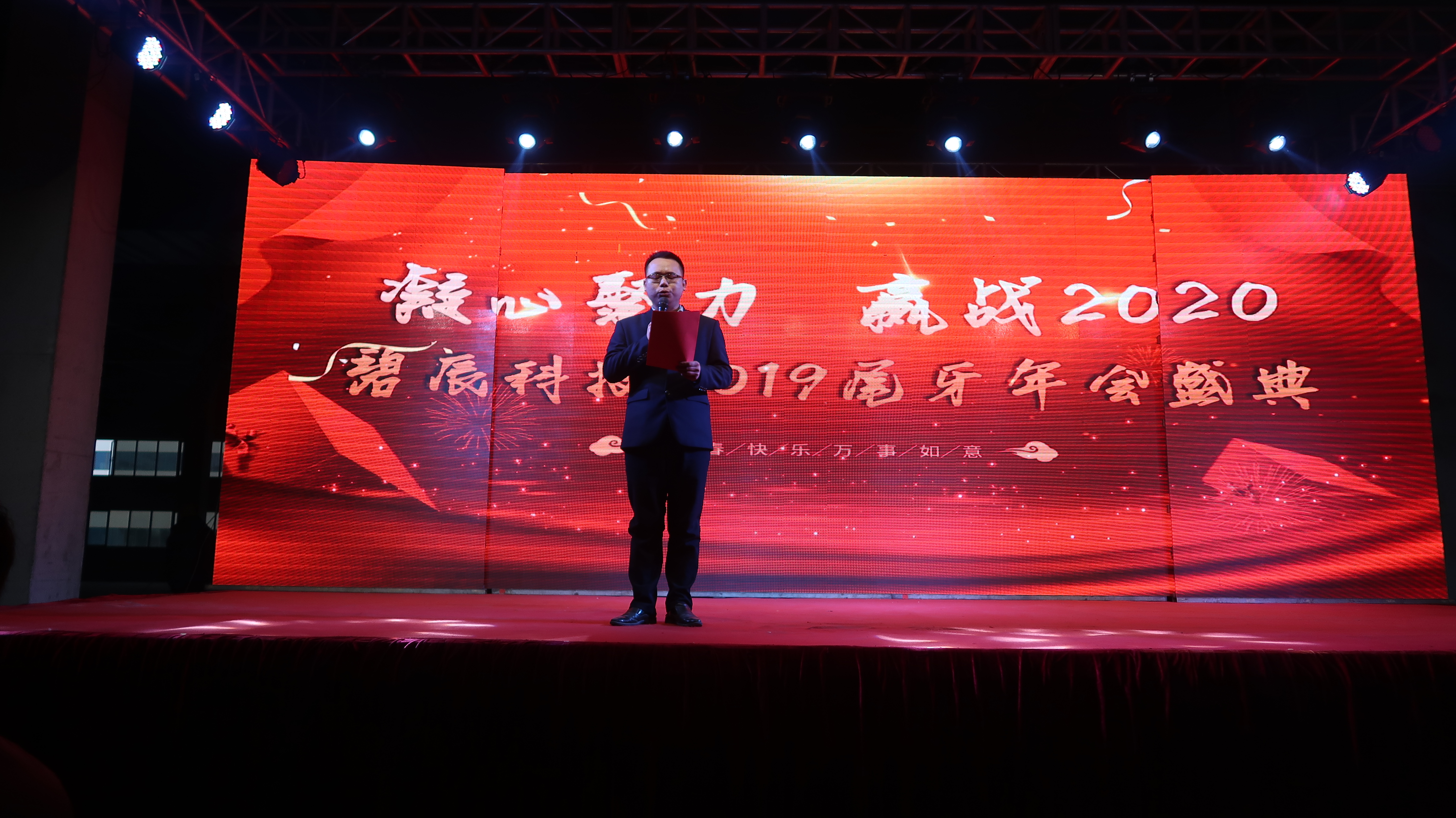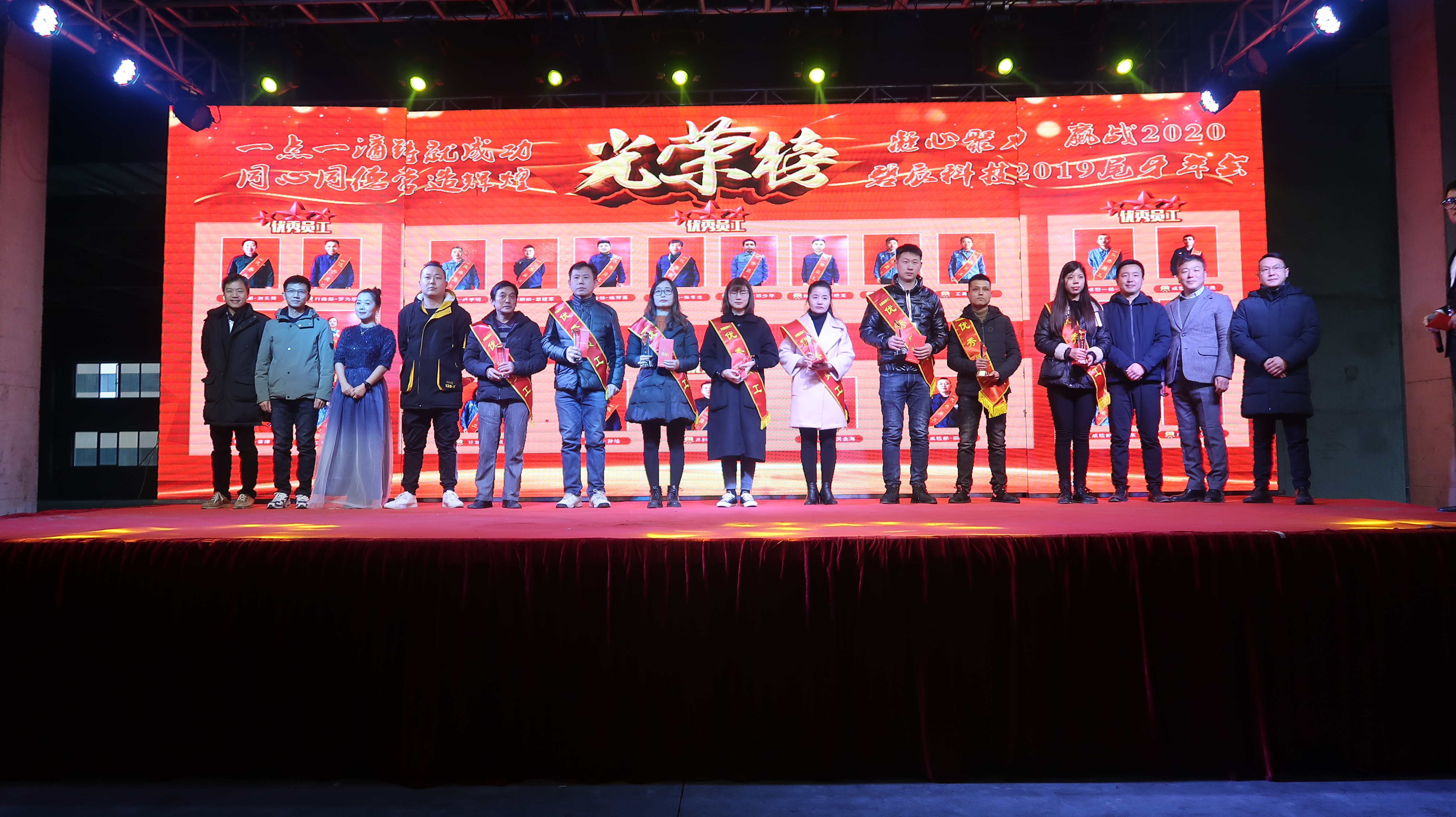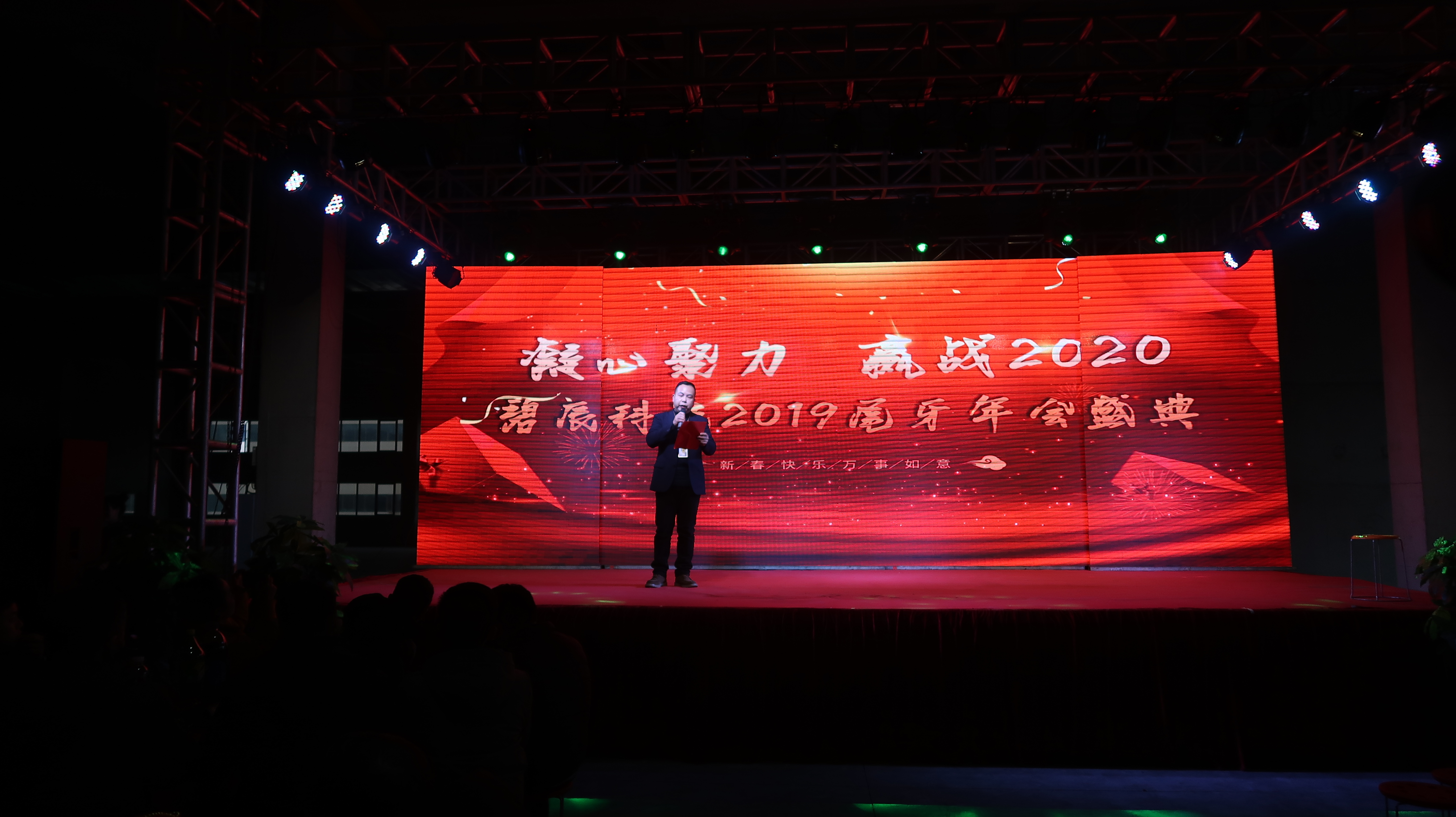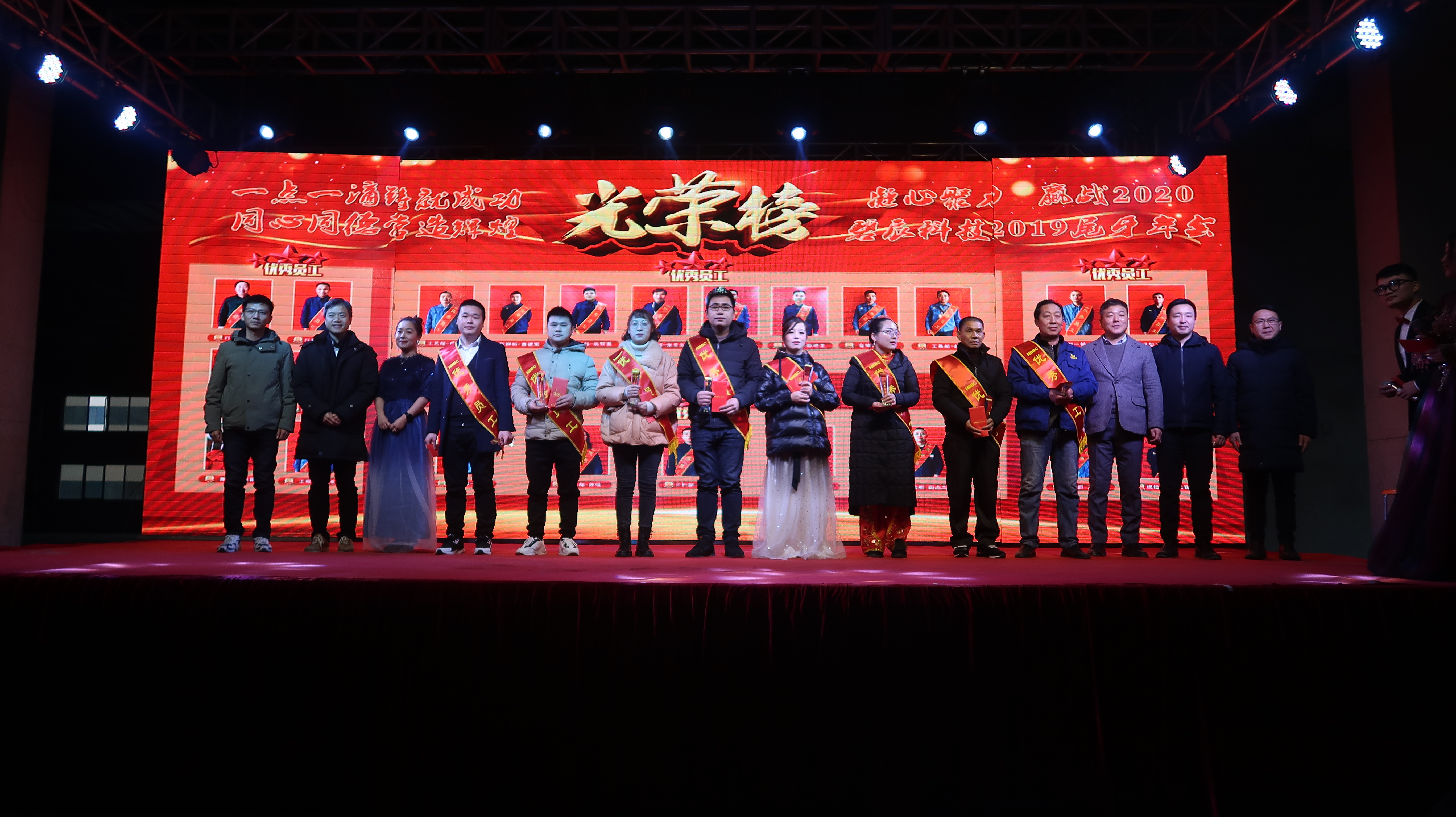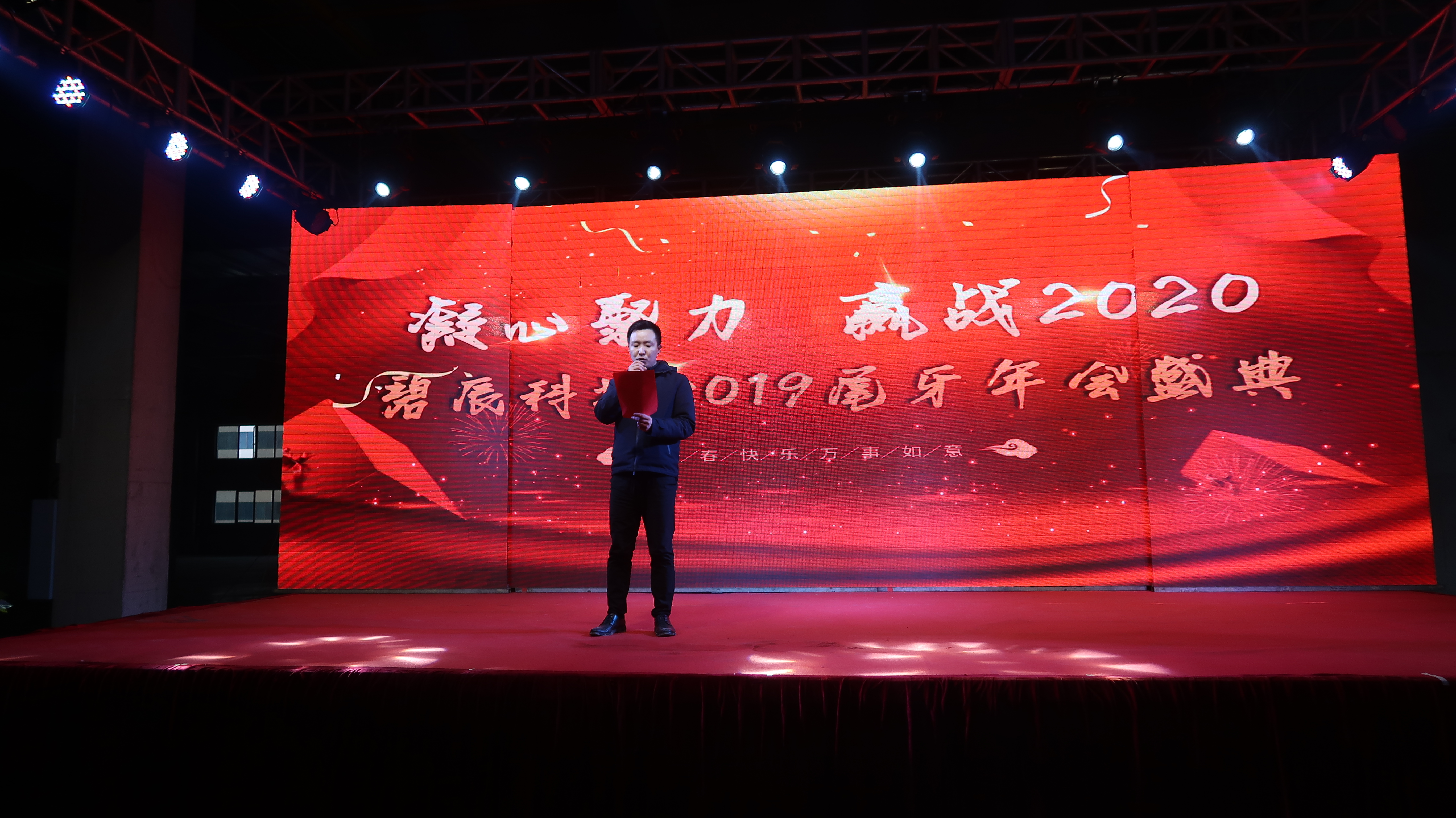 ? 2020年1月11日以"凝心聚力、贏戰(zhàn)2020"為主題的2019年度尾牙年會在廠內(nèi)三期廠房盛大召開,來自碧辰旗下各事業(yè)部的近1000多名員工歡聚一堂,在歡聲笑語中喜慶公司2019年度尾牙年會。尾牙年會在全體員工的熱情期待中拉開帷幕,劉董事長首先代表公司董事會并以個人名義,向在座各位員工及家人致以新年最美好的祝福和最誠摯的問候,回顧了充滿挑戰(zhàn)和拼搏的2019年所取得的斐然成績;隨后行政部經(jīng)理李朋宣讀了關(guān)于表彰2019年度優(yōu)秀員工的決定。